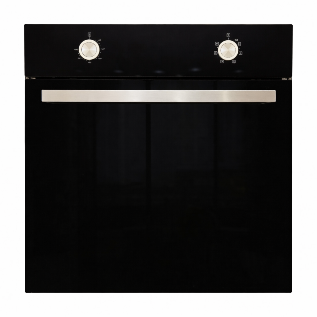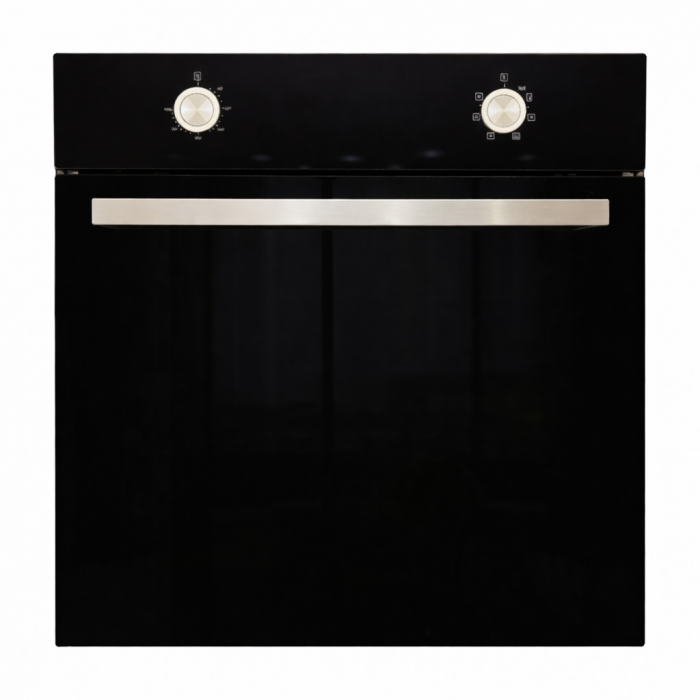 Черное стекло , 65 литров, 6 функций, LCD дисплей, конвекция, утапливаемые ручки, двойное стекло, объем-65 литров,2 противня+ 1 решетка.