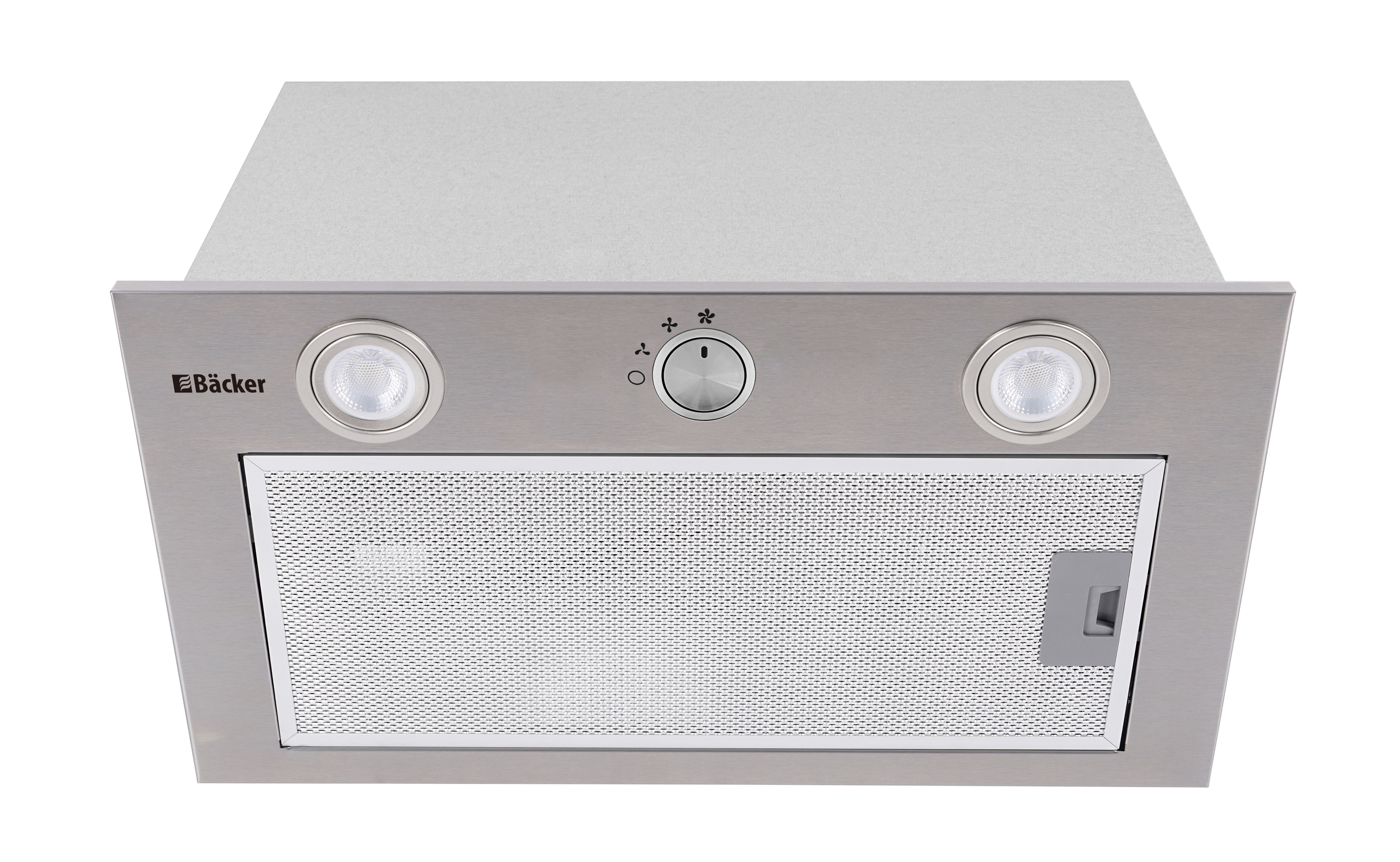 Вытяжка, полностью встраиваемая, ширина 52 см, отвод/рециркуляция, 850 м3/час, механическое управление - утапливаемая кнопка, 3 скорости, LED освещение 2*1,5 Вт, алюминиевый жироулавливающий фильтр, уровень шума max 66 дБ. Цвет панели - нержавеющая сталь (Угольные фильтра покупаются ОТДЕЛЬНО)